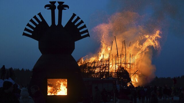 В арт-парке "Никола-Ленивец" проводили зиму огненным перформансом