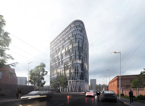 Проект представила компания UNK project (Москва). 15-тиэтажная башня с офисной и гостиничной частью расположена на 3-этажном стилобате и "затянута" ажурной диагонально-решетчатой оболочкой из металла. Прообразом этой структуры послужили работы инженера Шухова. Проект предполагает применение вертикального озеленения – в диагональных "ячейках" на фасаде поселится виноград, который будет менять облик башни в зависимости от сезона.