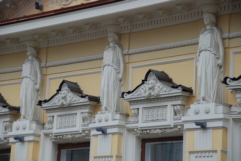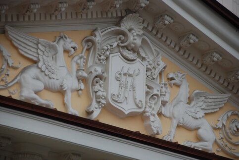 Напомним, существующий облик постройка приобрела в 1885–1886 годах, когда архитектор Николай Краснов изменил фасад старого усадебного дома по заказу нового владельца – Михаила Грачева. Тогда фасад здания был украшен шестью небольшими кариатидами и пышной лепниной, а также увенчан фронтоном, в центре которого появился герб с вылепленными буквами "М" и "Г", соответствующими инициалам владельца.