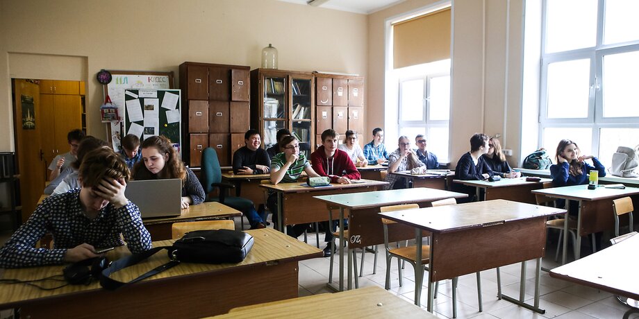 Ирина Игоревна не единственный учитель в аудитории, их три. Ирина Игоревна работает у доски, Тамара Георгиевна с Наталией Евгеньевной идут по рядам и проверяют домашнее задание у каждого ученика, а потом садятся за свободные парты и устраивают консультации. В течение всего занятия любой человек может подойти к ним с вопросом. И по такой системе в школе проходят все семинары по профильным предметам: один педагог учит, другой консультирует, объясняет непонятное. Множество преподавателей – это и множество точек зрения на решение задач.