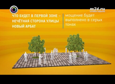 На северной стороне Нового Арбата ширина тротуара не изменится. Однако на нем высадят зеленую аллею, ограждающую пешеходов и жителей от шума и пыли городской магистрали. Тротуары северной стороны покрыли гранитной плиткой теплого красного оттенка.