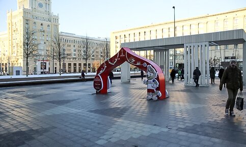 Арку и рекламные щиты с символикой Кубка конфедераций года и чемпионата мира по футболу-2018 поставили в столице, сообщает mos.ru.