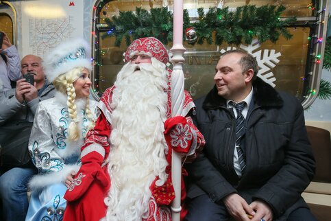 Поезд торжественно запустили на станции "Комсомольская" в присутствии начальника Московского метрополитена Дмитрия Пегова. Почетным гостем церемонии стал главный Дед Мороз страны, прибывший в Москву из Великого Устюга.