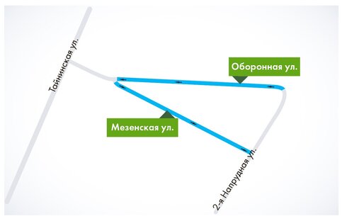 Правила меняются на участке Оборонной улицы от пересечения со 2-й Напрудной улицей до пересечения с Мезенской улицей, а также на участке Мезенской улицы от пересечения с Оборонной улицей до пересечения со 2-й Напрудной улицей.