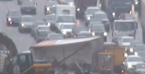 Грузовик въехал в ограждения на 42-м километре МКАД 14 апреля, передает телеканал "Москва 24".