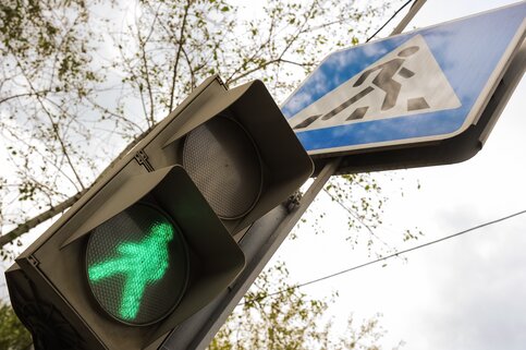Например, если автомобиль подъезжает к переходу, в течение минимального времени включается зеленый сигнал светофора. Пешеходы могут нажать специальную кнопку на светофоре, чтобы приостановить транспортный поток и перейти дорогу.
