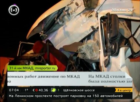 В ночь на 12 апреля в районе 31-го километра МКАД произошла авария с участием двух фур. По словам очевидцев, сначала столкнулись две легковые машины, за которыми следовали грузовики. Чтобы избежать аварии водитель одного из тягачей резко затормозил. Его коллега, который ехал следом, не успел сбросить скорость и врезался в прицеп.