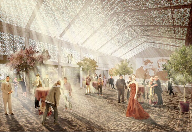 В настоящее время от исторического объема здания сохранился главный фасад, построенный в стиле неоклассицизма, и фойе. Эта часть здания будет полностью восстановлена, а рядом с ней появится новый объем с кинозалом и выставочными помещениями.