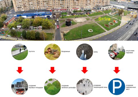 По словам архитектора, площадь сквера больше, чем футбольное поле на стадионе "Лужники". "Это одна из "мертвых" зон города, хотя ее сейчас его благоустроили, поставили лавочки, но все равно мало что изменилось, он по-прежнему функционально не работает на город. В теплое время года там много бездомных. Я не могу представить, что местный житель или человек, который вышел из метро, прогуляется там или присядет на эту лавочку", - сказал Кормаченко.