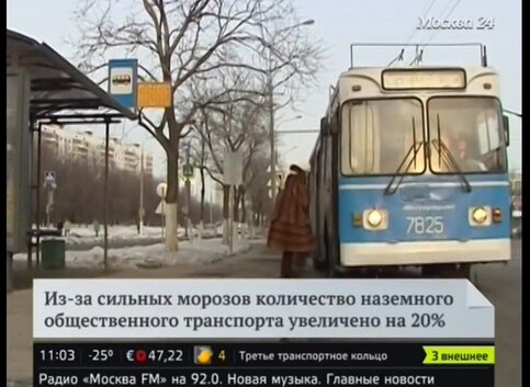 Из-за сильных морозов в Москве количество наземного транспорта увеличено на 20%.