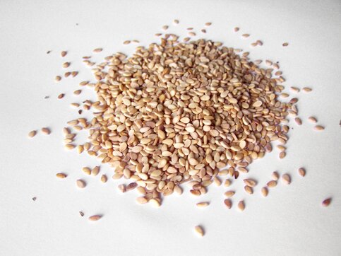 Кунжутные семечки. Главная польза кунжутных семечек заключается в высоком содержании витамина Е, обладающего омолаживающим действием, и кальция. Суточную потребность кальция можно съев 100 гр семян. Также в кунжутных семечках содержится четверть от необходимого организму объема белка, необходимого для восстановления и роста тканей. Кунжут багат цинком, кальцием, медью, железом, фосфором, магнием и калием, витамином А, Е и группы В.
