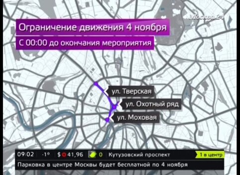 Так, движение будет ограничего с 00.00 и до окончания мероприятия по улицам Тверская, Моховая и Охотный ряд.