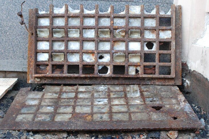 Во время реконструкции на Мясницкой, проведенной на этой неделе, были найдены уникальные подвальные окна-решетки с американскими призмами Luxfer конца XIX – начала XX века. Их обнаружили под асфальтом на тротуаре у бывшего Торгового дома Кузнецова, сейчас дома 8/2, строение 1, по Мясницкой улице, сообщил М24.ru москвовед Александр Усольцев.