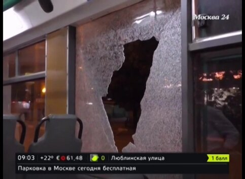Транспорт двигался от метро "Щелковская". Водитель услышал громкий хлопок, но не придал этому значения. Через некоторое время пассажиры сообщили, что заднее боковое стекло в салоне разбито.