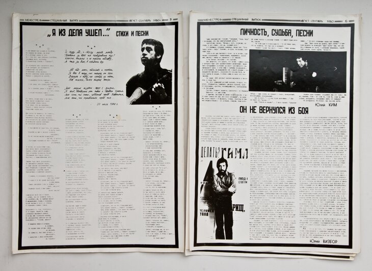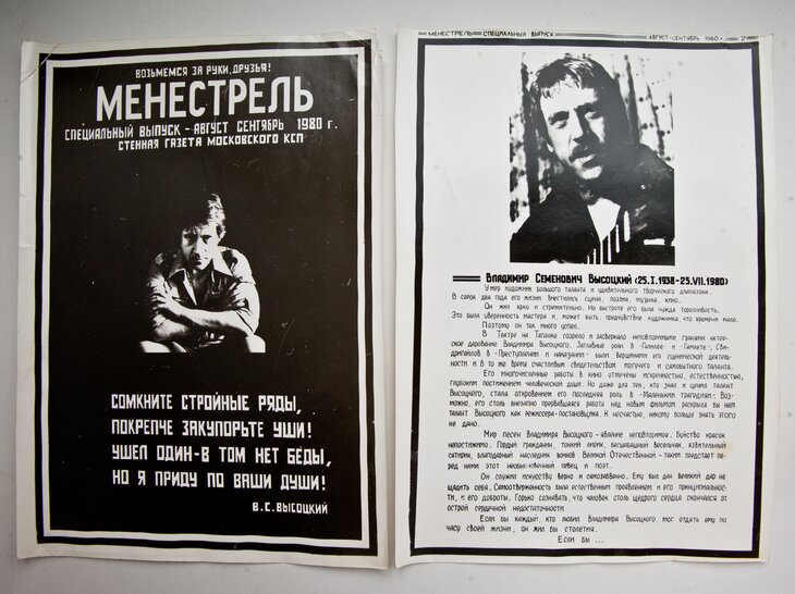 После смерти Владимира Высоцкого в советских газетах и журналах, о нем стали появляться первые осторожные точечные публикации. Вырезки с этими публикациями собирались в папки, фотографии неоднократно переснимались. Мутные фото поэта продавали в электричках, на пляжах, и с оглядкой - в газетных киосках. Вырезками и фотографиями (иногда объединенными в полновесные альбомы) лихо обменивались, информацию переписывали. Сшитые скоросшивателем листы, объединяли в самиздатовские сборники и перепродавали. Одним из первых полновесных серьезных самиздатовских посмертных проектов, стала газета московского КСП "Менестрель". Фотокопии этого издания, порой приходилось изучать вооружившись лупой. Сбитые в картонные папки листы давали почитать лишь на одну ночь. На более долгий срок отпускать это сокровище боялись - велика была вероятность безвозвратной потери бесценного материала.