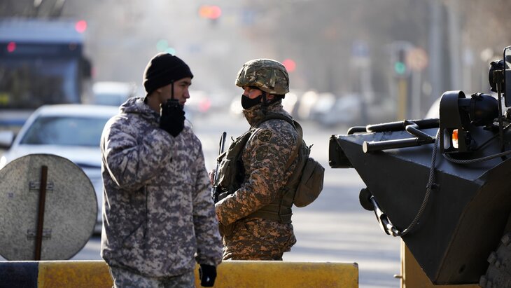 В связи с волнениями президент страны Касым-Жомарт Токаев запросил помощи у ОДКБ, организация приняла решение направить в регион миротворческие силы.