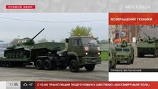 Боевые машины уже направляются на базу временного размещения, которая находится в парке "Печатники". Подробнее – в эфире телеканала Москва 24.