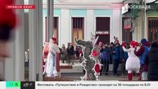 Поезд главного Деда Мороза прибыл из Великого Устюга в Москву на Белорусский вокзал. Передвижная резиденция зимнего волшебника состоит из 19 вагонов и паровоза.