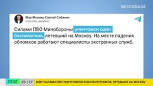 Собянин сообщил об устранении еще одного БПЛА на подлете к Москве
