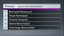 Журнал CEO опубликовал рейтинг самых богатых детей России. На первом месте располагается Виктория Михельсон. Единственная дочь председателя правления газодобывающей компании Леонида Михельсона является наследницей состояния в 13 миллиардов долларов. Виктории 21 год и она сместила прошлогоднего лидера Юсуфа Алекперова на второе место, в его потенциальном кошельке - 12 миллиардов. Всего в рейтинге 88 строчек. Состояние самого "бедного" отпрыска в этом списке - 1 миллиард долларов.