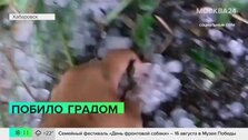 В Хабаровске прошел сильный град. Ледяные шарики повредили урожай, автомобили и даже причинили травмы прохожим. Многие пытались укрыться под деревьями, но это не помогло избежать синяков и ссадин. Град сопровождался сильными порывами ветра.