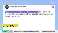 Собянин сообщил об устранении еще одного БПЛА на подлете к Москве