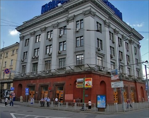 Дом много раз перестраивали в конце XIX – начале XX века. В 1938 году его изменили по проекту архитектора Н.Фомина в стиле советской неоклассики. На первом этаже организовали наземный вестибюль станции метро "Театральная".