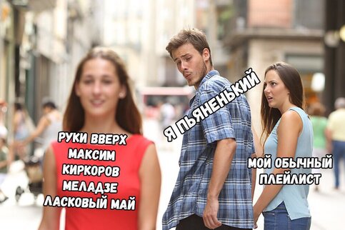 Distracted boyfriend – мем, основанный на фотографии, где парень, идущей с девушкой за руку, смотрит на другую девушку, проходящую мимо.