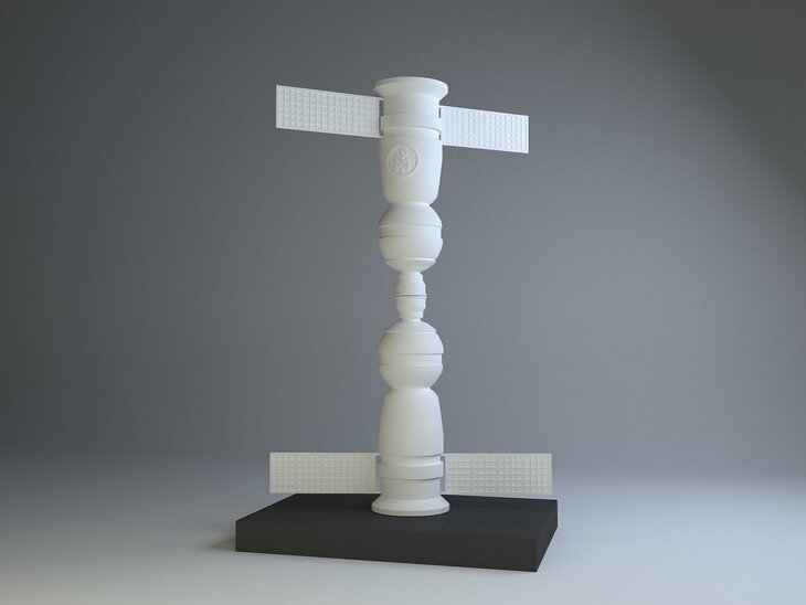 "Возвращение" Арсения Жиляева − это 13 скульптур, созданных специально для выставки в ЦСИ "Винзавод". Они представляют собой результат работы вымышленного персонажа, искусственного интеллекта Роберта Пастернака, который переосмысливает всю историю искусства, начиная с античности. Космические аппараты, ракеты-носители и спутники, созданные Пастернаком, оказываются трансформированными колоннами древних храмов, а в самих храмах поклоняются теперь не богам, а науке. Проект Жиляева стал заключительным в юбилейном цикле "Винзавода" "Прощание с вечной молодостью", в рамках которого куратор Николай Палажченко показал выставки всех наиболее знаковых российских современных художников − арт-группы Recycle, Миши Most, Егора Кошелева, Urban Fauna Lab и других.