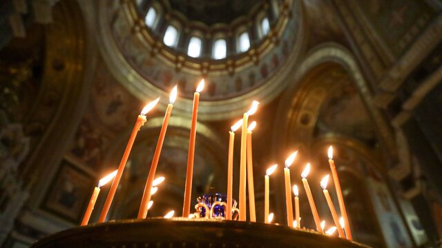 Благодатный огонь доставлен на пасхальное богослужение в храм Христа Спасителя -