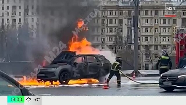 Каршеринговый автомобиль сгорел в районе Нового Арбата