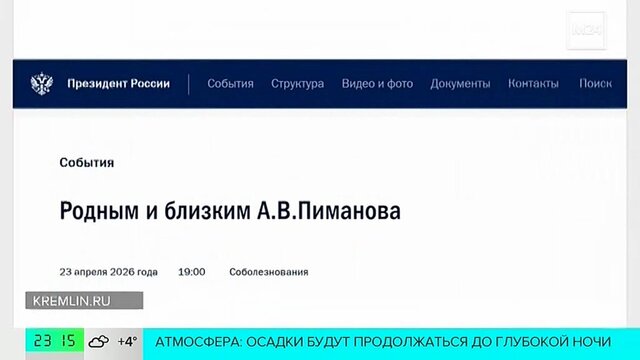Путин выразил соболезнования родным умершего телеведущего Пиманова