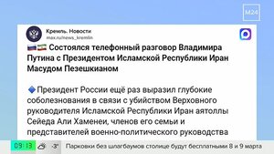 Путин и президент Ирана обсудили конфликт на Ближнем Востоке