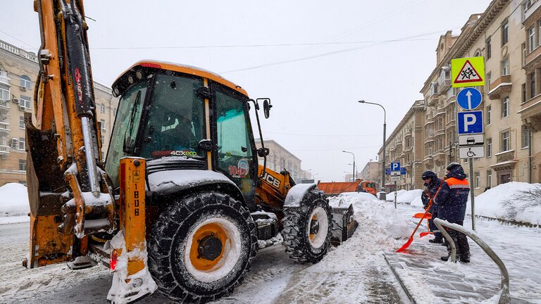 Городские службы в усиленном режиме очищают Москву от снега во время оттепели