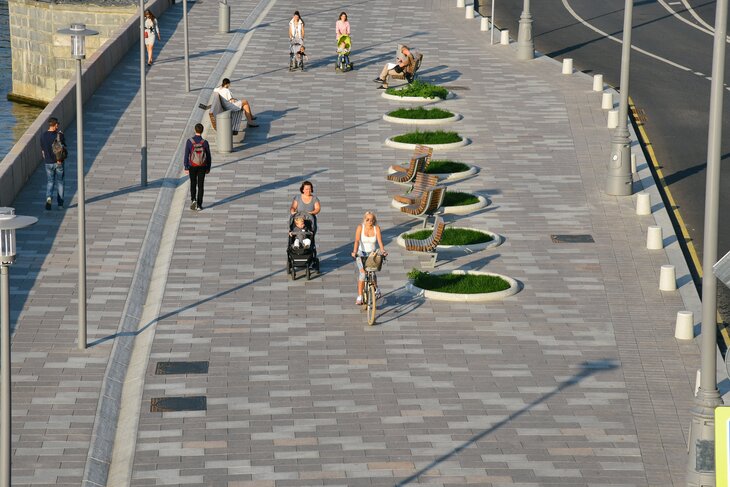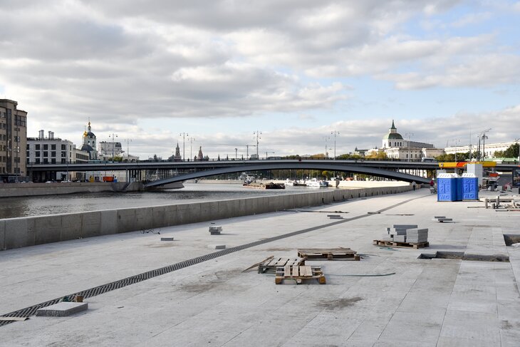 Чтобы представить, какими будут благоустраиваемые набережные, можно отправиться на прогулку по гранитной дорожке по Якиманской набережной. Обновленная набережная стала естественным продолжением парка Горького и "Музеона".