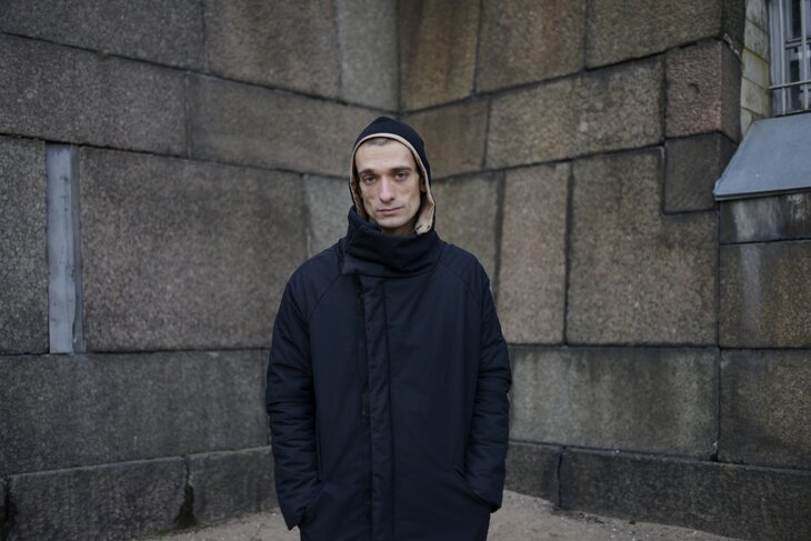 Петр Павленский стал известен благодаря истории со скандальным "панк-молебном" от участниц группы Pussy Riot. Пока девушки сидели под арестом, Павленский устроил акцию в их поддержку и вышел к Казанскому собору в Санкт-Петербурге с зашитым ртом и плакатом.