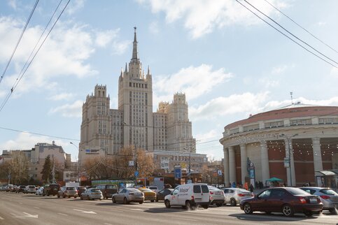 Брусчаткой была покрыта проезжая часть на Баррикадной улице – от дома 2/1 до пересечения с Большой Грузинской улицей, а также часть Кудринской площади возле высотки.
