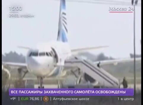 Напомним, утром 29 марта стало известно о захвате пассажирского самолета A320 компании EgyptAir, следовавшего из Александрии в Каир. На борту угнанного лайнера оказалось 81 человек. Вскоре самолет приземлился в аэропорту Ларнака на Кипре и захватчик начал постепенно отпускать заложников.