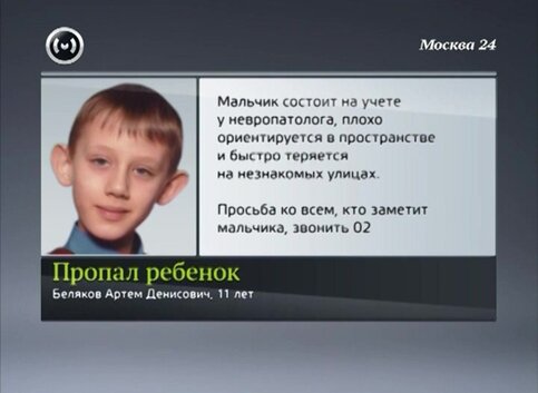 В Москве пропал еще один ребенок. Днем 7 декабря из дома в Зеленограде ушел и не вернулся 11-летний Артем Беляков. Мальчик состоит на учете в психоневрологическом диспансере. Он плохо ориентируется в пространстве и быстро теряется в незнакомой местности.