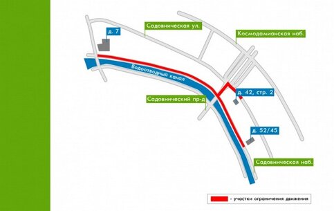 Также для проезда будет закрыта одна полоса на Садовническом проезде от набережной до Садовнической улицы. И по ней до дома 42 строение 2.