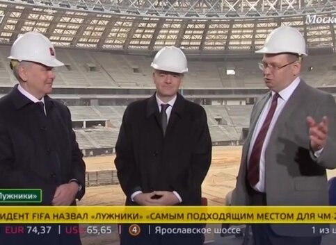 Сергей Собянин и новый президент FIFA Джанни Инфантино осмотрели ход реконструкции стадиона "Лужники" и обсудили подготовку столицы к Чемпионату мира по футболу, который пройдет в 2018 году.