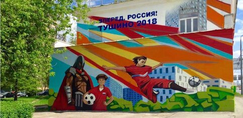 Рядом со столичным стадионом "Открытие Арена" нарисовали граффити к Чемпионату мира по футболу-2018, сообщает mos.ru.