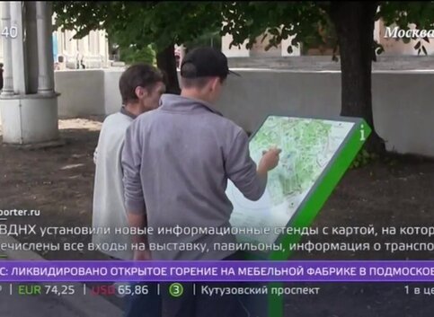 На ВДНХ установили новые информационные стенды, на которых изображена карта комплекса, указаны все павильоны, а также входы, выходы и информация о транспорте, сообщает телеканал "Москва 24".