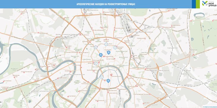 Карту археологических находок, сделанных во время благоустройства московских улиц, опубликовали на портале открытых данных.