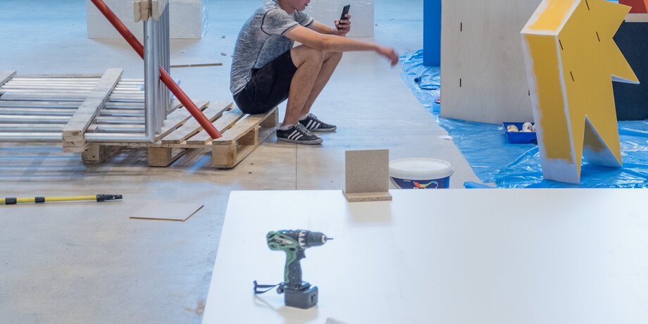 Моя работа называет “Прекариат”. Она была сделана два года назад, но выставляю я ее впервые, потому что она может быть выставлена только здесь, в России. Прекариат – это новый экономический класс, слабый и незащищенный от кризисов. Это в основном фрилансеры, то есть люди, у которых нет ни социальных, ни эконочиеских гарантий, и при этом они являются основным двигателем “ничего”, то есть всех революций, которые не имеют никаких результатов. Эта скульптура стала аллюзией на “Рабочего и колхозницу” Веры Мухиной и Бориса Иофана. На стену будет приклеен фон с изображением этой скульптуры, как олицетворения пролетариата, который менял мир и строил новое будущее.