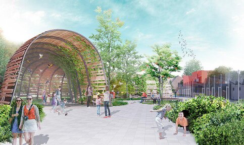 Около входа на территорию зоопарка со стороны Садовой-Кудринской улицы построят павильон информационного центра, где детям будут читать лекции о фауне страны и мира. Рядом появится выставочный павильон, а у инфоцентра расположится многоуровневая терраса, откуда по мостику можно будет выйти на крышу выставочного павильона.