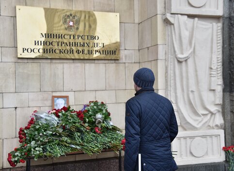Цветы и свечи приносят к главному входу в центральное здание МИД РФ на Смоленской площади в Москве. Соболезнования в связи с кончиной дипломата уже выразили президент РФ Владимир Путин, премьер-министр Дмитрий Медведев, представители российского внешнеполитического ведомства.