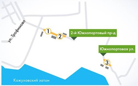 - 2-м Южнопортовом проезде от дома 14/22, строение 3 до дома 18, строение 1;