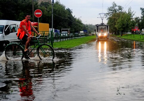 Из-за сильного ветра и ливня нарушен график движения наземного городского пассажирского транспорта.