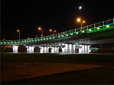 По его словам, для пилотного проекта предложено мультимедийное светодинамическое освещение, оно позволит создавать различные эффекты — делать плавные переходы от цвета к цвету или менять яркость. Лампы могут быть вмонтированы в опоры путепровода или в сам мост. При этом свет не будет слепить машинистов электропоездов и автомобилистов, отметил архитектор.